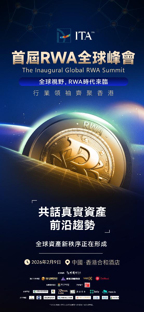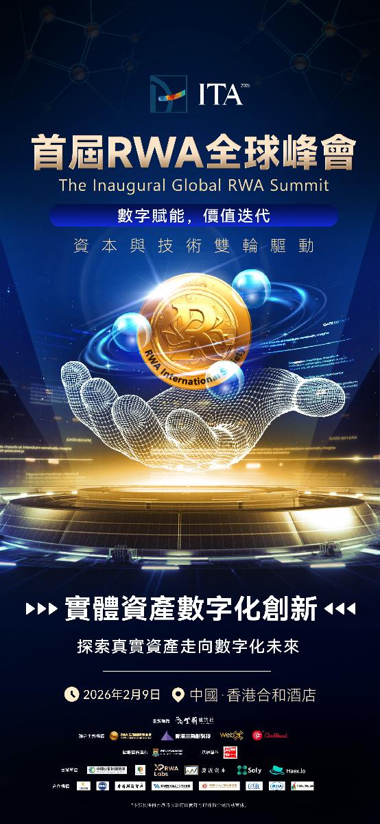 為探討RWA(現實世界資產)前沿趨勢,搭建政、經、產、學、研多方高端交流合作平臺,共謀行業高質量發展新機遇,紫荊雜誌社擬聯 合RWA生態國際聯合會、三角形科技(香港)有限公司、WebX全球數字控股集團、Coin Found,於2026年2月9日在合和酒店16樓大禮堂 共同舉辦“ITA 2026 首屆 RWA 全球峰會”,屆時千餘位全球行業翹楚將匯聚一堂,共赴這場聚焦價值通證化的頂級思想盛宴。 峰會除聚焦行業政策與行業熱點的主題演講外,還將开展多場圓桌論壇,議題涵蓋:RWA(現實世界資產)與區塊鏈(公鏈)結算平台的 融合、交易領域中傳統金融與加密金融的協同發展、流動性提升、技術創新與監管合規之間的平衡、RWA 在數字藝術、生物醫藥、綠色能 源等多領域的應用實踐,以及全球併購與合作機遇。