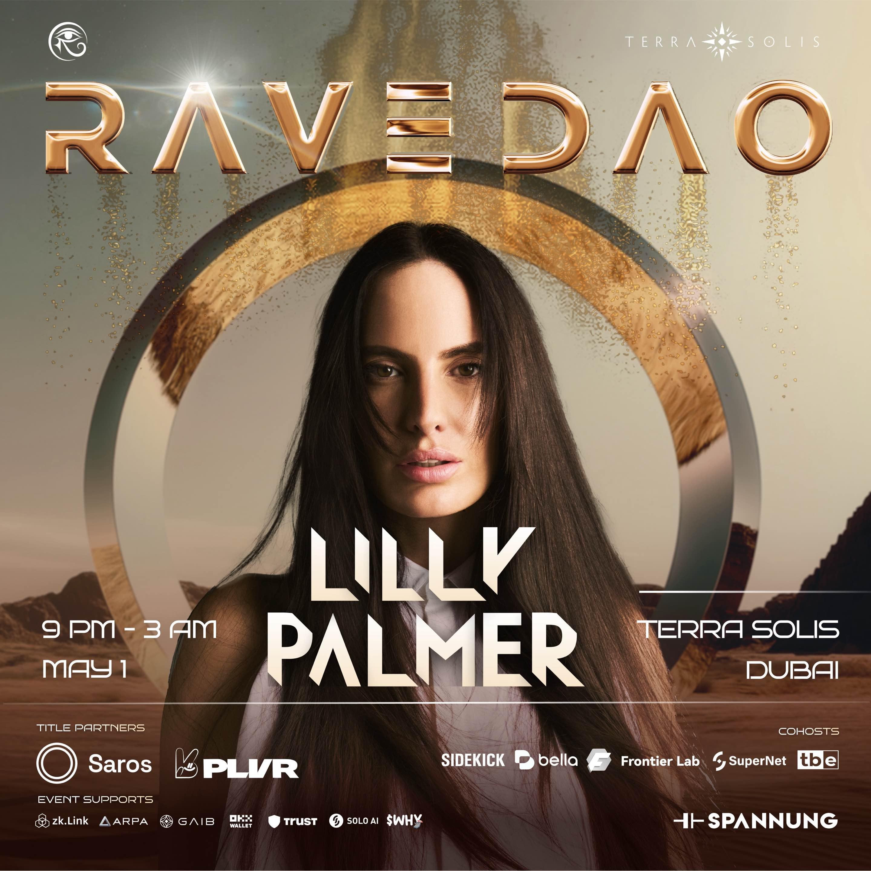 Top Female DJ Lineup β Experience electrifying sets from Lilly Palmer (#10), Pretty Pink (#31), Nifra (#63), and Jiayu (RaveDAO resident DJ), top talents reshaping the global electronic scene.