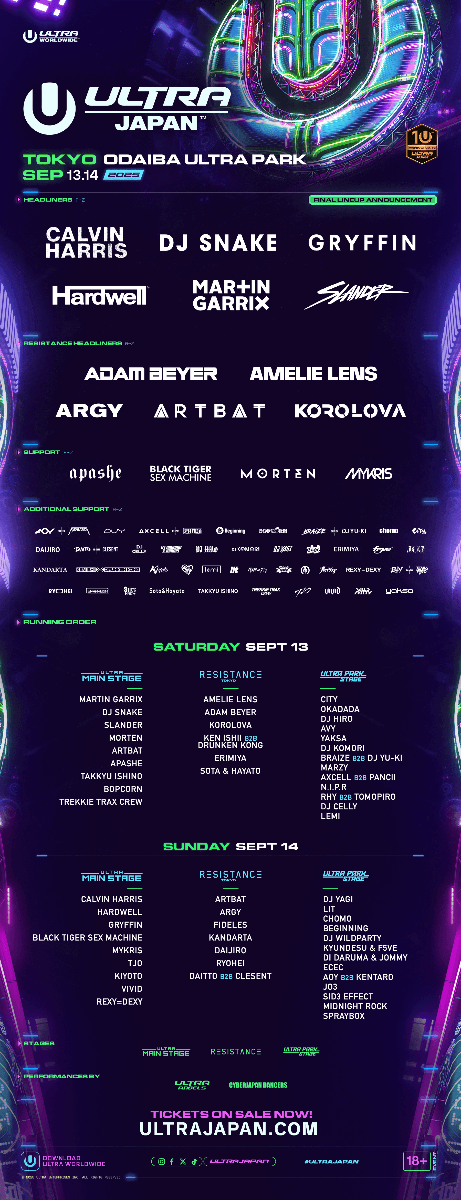 Ultra Japan returns to the neon-lit skyline of Odaiba for its 11th edition in 2026, solidifying its status as the country's premier electronic music festival. Set against the futuristic backdrop of Tokyo Bay, this two-day extravaganza transforms the city into a global dance floor, featuring state-of-the-art production, massive pyrotechnics, and a lineup of the world's most elite electronic artists.