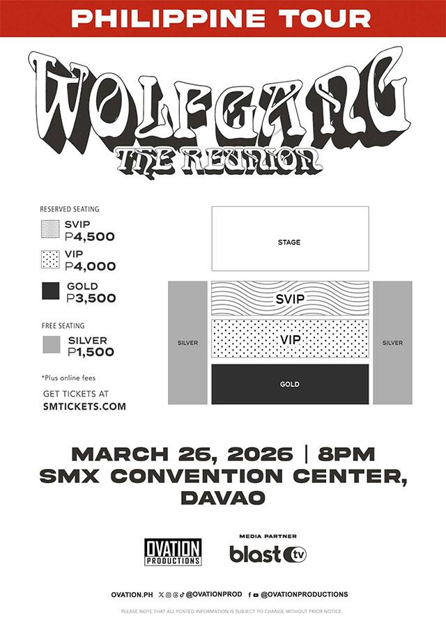 The legendary Filipino hard rock icons, Wolfgang, are bringing their highly anticipated reunion tour to Davao! Following a massive, sold-out show in Manila, the band is hitting the road to celebrate the 30th anniversary of their landmark self-titled debut album.